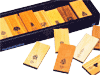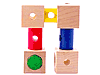 3.5cm角のカエデ材のキューブを25個使用し、立方体(キューブ)の6面の組み合わせで、パターンを作って遊びます。平面でパターンをつくっても面白 いですが、無造作に積んだりすると現れる形は動物や建物などにも見え、まざまな形が創り出される奥の深いおもちゃです。