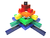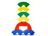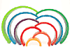 高さ3cmのパーツ9種類(9色)で構成されたこのアーチ形の積み木は、バランス要素の強い構成積木として遊ぶことも出来、独自の創造力を活かした造形が 楽しめます。ドイツ最大のデザインコンペ「bundes preis produkt design 1998」において、最優秀の5点の中に選ばれました。