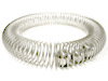 コイル状に巻かれた直径22cmの円の中に、3つの玉(大2個・小1個)が入っており、リングを傾けると玉が移動するわけですが、そのときに起こる振動が手に心地よいおもちゃです。のしびれるような、くすぐったいような不思議な感覚を味わってみてください。
